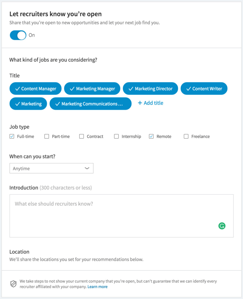 Remember, if you are job searching at a specific location, you want to set your location on LinkedIn – so that way, your profile will appear in more relevant searches.